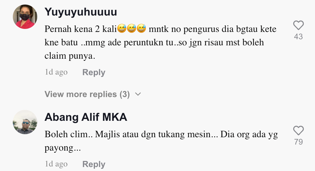 Sementara itu, tinjauan di ruangan komen mendapati rata-rata netizen turut berkongsi pengalaman sama mereka. Ada juga yang memberitahunya apa yang perlu dibuat selepas itu.