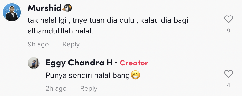 Ketika artikel ini ditulis, video berkenaan telah mendapat 1.2M views, 38.8K likes dan 1,152 comments di TikTok.