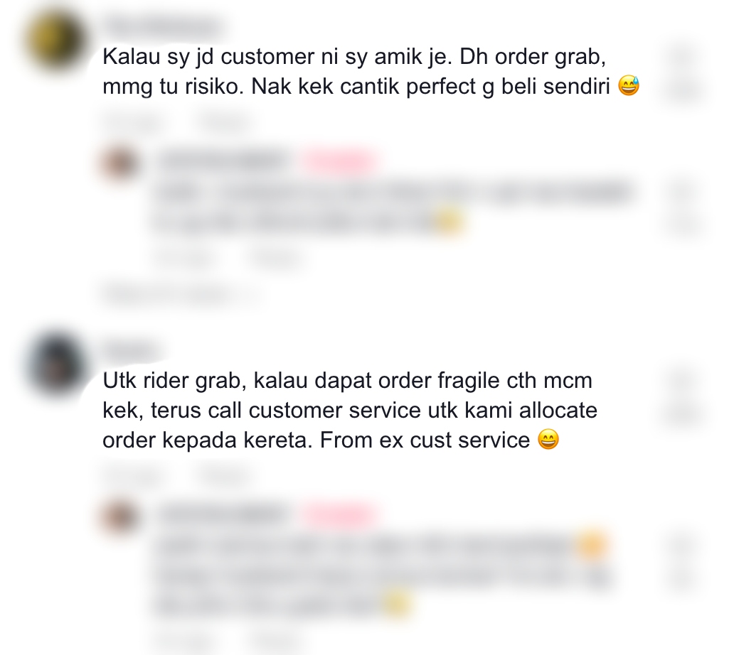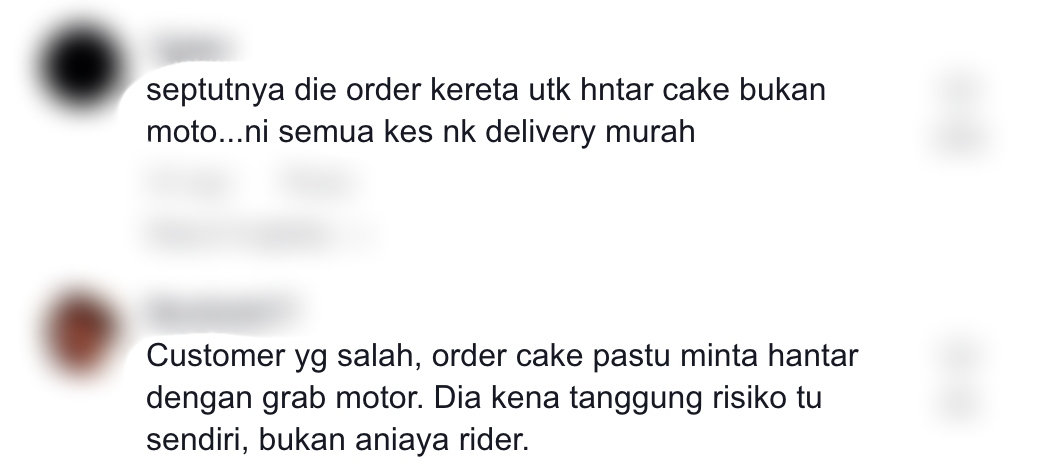 Difahamkan, suaminya yang bekerja sebagai rider terpaksa mengeluarkan duit sendiri selepas seorang pelanggan menolaknya dan meminta agar dia menggantikan kek tersebut kerana mempunyai sedikit kerosakan.