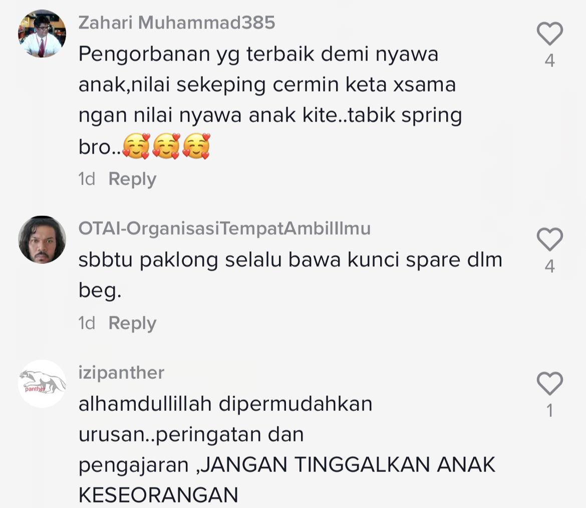 Baru-baru ini, tular sebuah video di TikTok yang memaparkan tindakan seorang lelaki yang tekad memecahkan sendiri cermin kereta kerana anaknya terkunci di dalam kereta telah mendapat perhatian ramai.