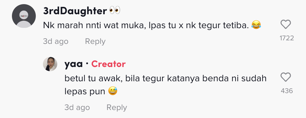 Dalam pada itu, tinjauan di ruangan komen mendapati rata-rata netizen turut memberikan pelbagai reaksi mereka dan ada juga berkongsi pengalaman sama.