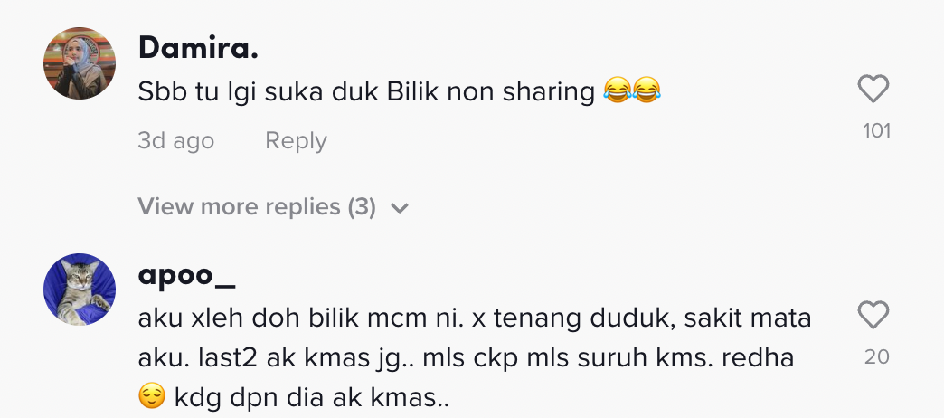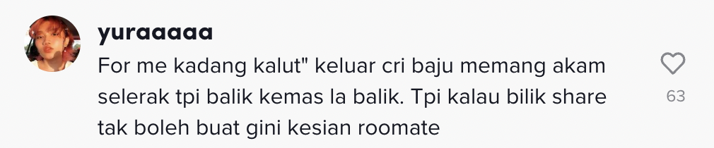 Sama seperti video di TikTok ini apabila seorang gadis berkongsi keadaan bilik yang dikongsikan bersama rakannya telah mencuri tumpuan ramai.