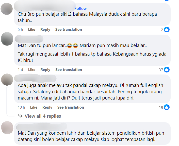 Tular baru-baru ini isu seorang individu mengaku tak pandai bertutur dalam bahasa Melayu telah mendapat pelbagai reaksi daripada warganet