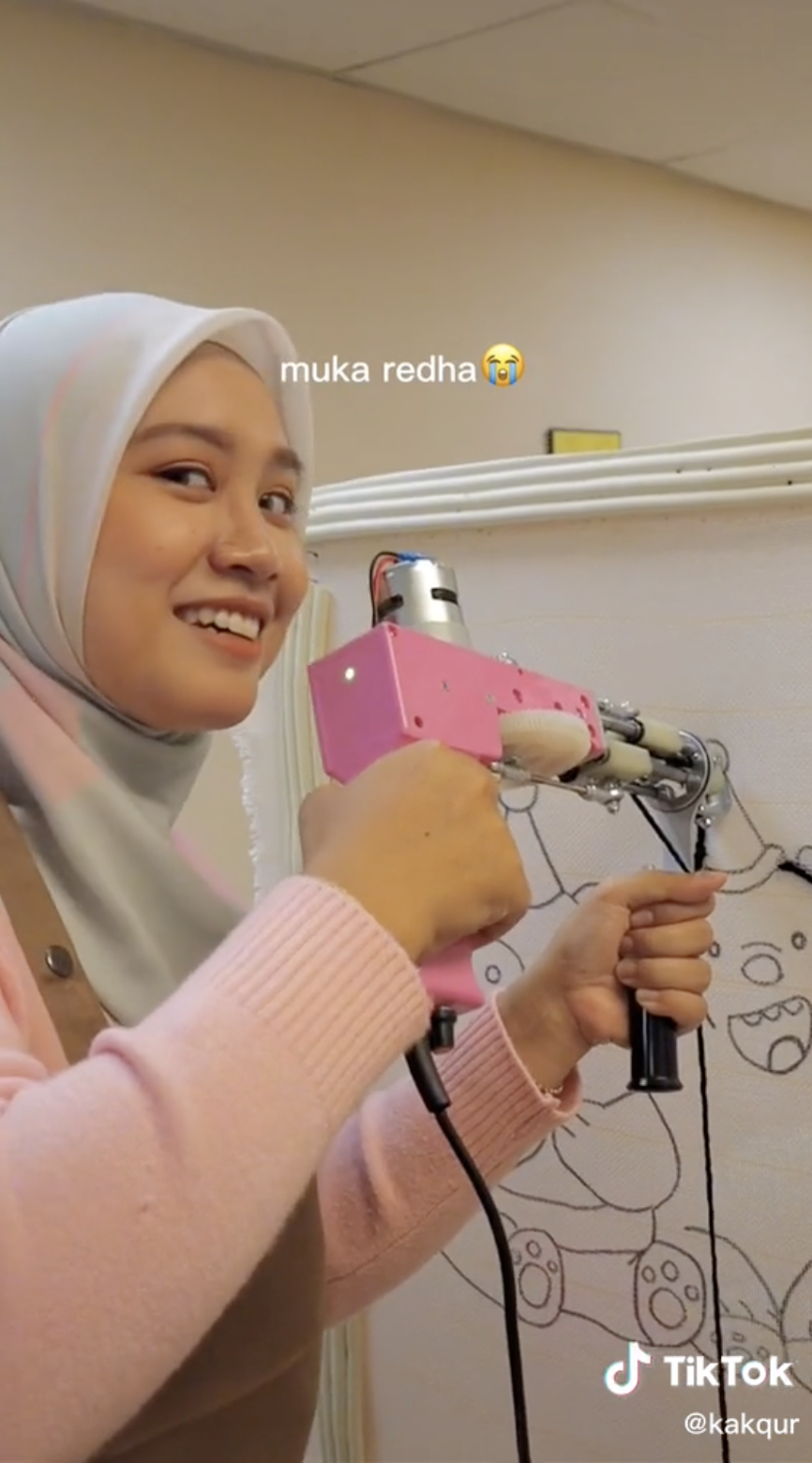 Menerusi video tersebut, kelihatan wanita itu sedang berada di sebuah kedai membuat karpet bersama dengan rakannya.