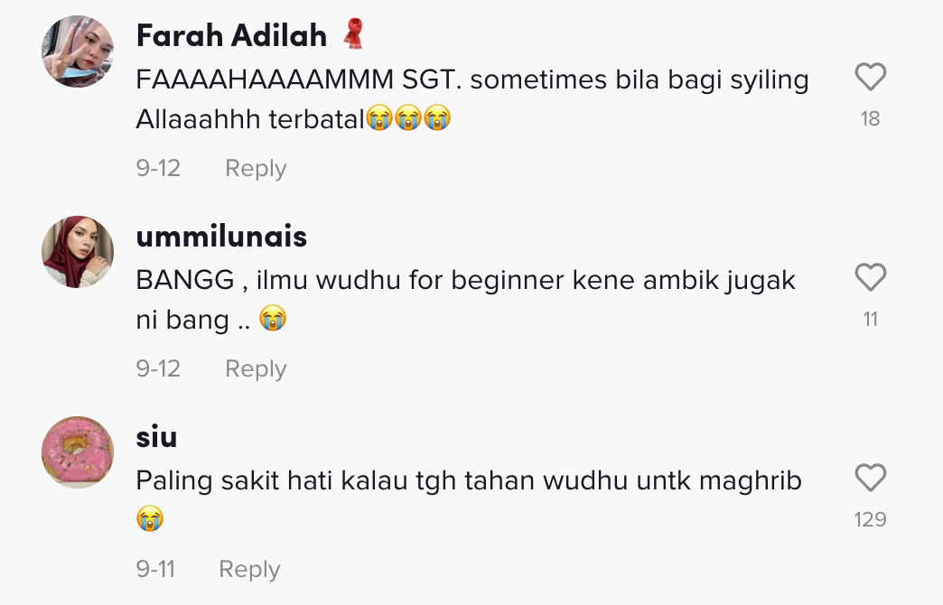 Cover image via @kakqur (TikTok)Bagi sesetengah wanita, mengambil wuduk awal lebih memudahkan mereka