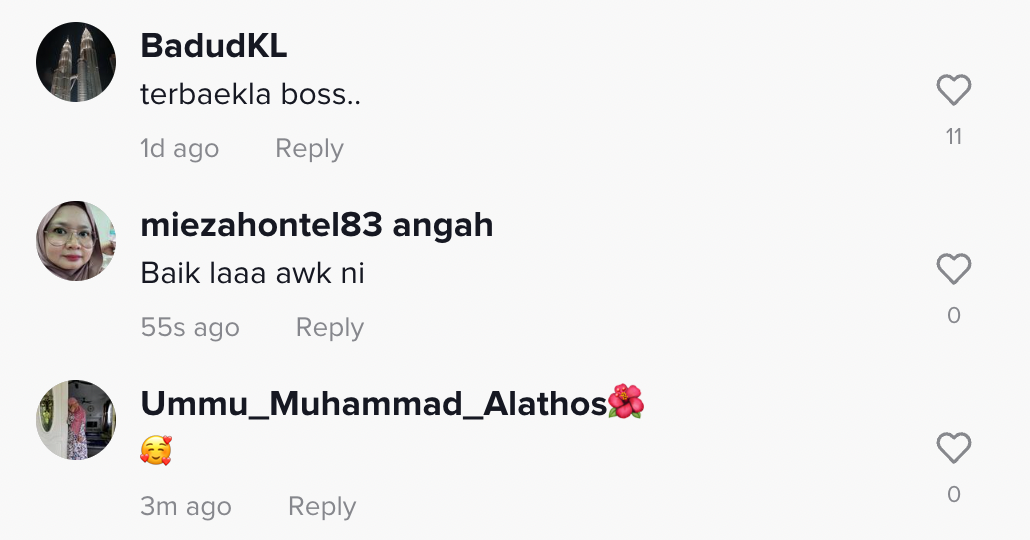 Berikut di bawah adalah antara komen daripada netizen di TikTok: