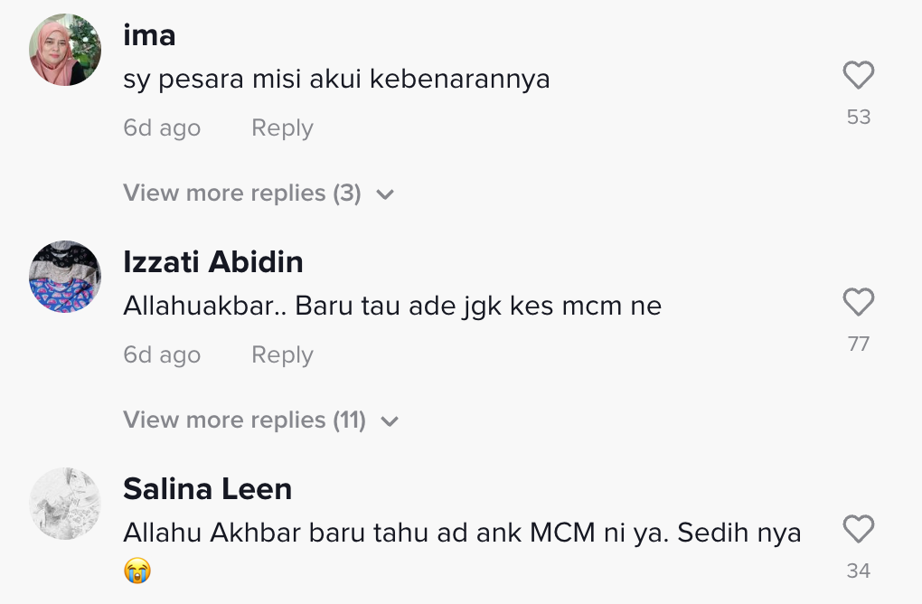 Berikut di bawah adalah antara komen daripada netizen di TikTok: