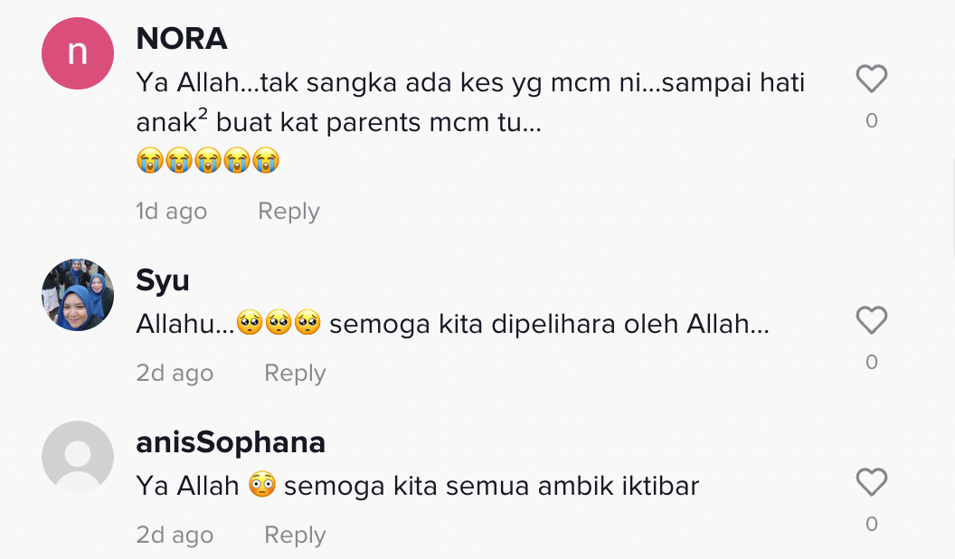 "Ya Allah, tak sangka ada kes yang macam ni. Sampai hati anak-anak" – Netizen