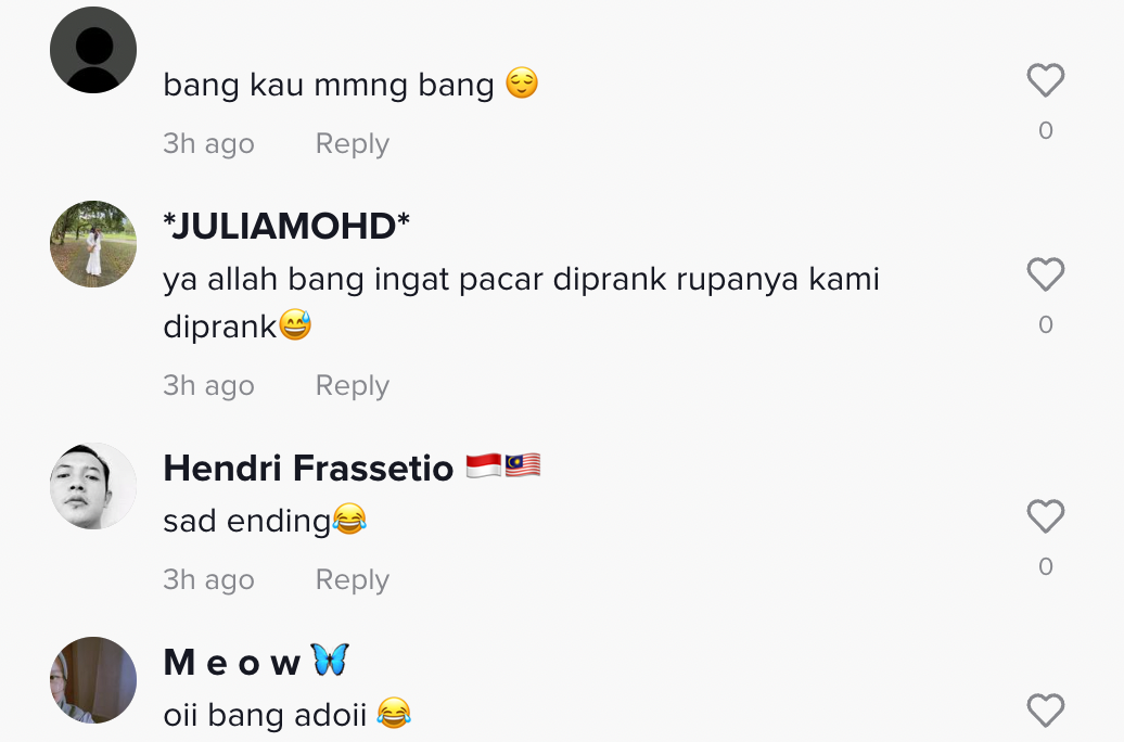 Dalam pada itu, tinjauan di ruangan komen mendapati rata-rata warganet turut merasa tertipu dan terhibur dengan konten pemuda berkenaan.