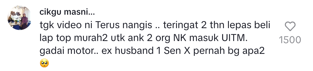 Cover image via @asiah1106 (TikTok)Pengorbanan ibu dan bapa sangat besar buat kita sehingga tidak mampu untuk dibalas dengan wang ringgit