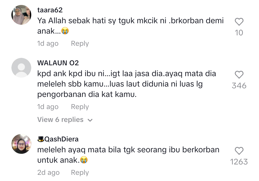 "Ya Allah sebak hati saya tengok mak cik ni. Berkorban demi anak" – Netizen