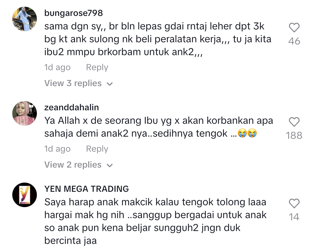 Sementara itu, tinjauan di ruangan komen mendapati rata-rata netizen turut sebak dan memberikan pelbagai reaksi mereka selepas melihat video tersebut.
