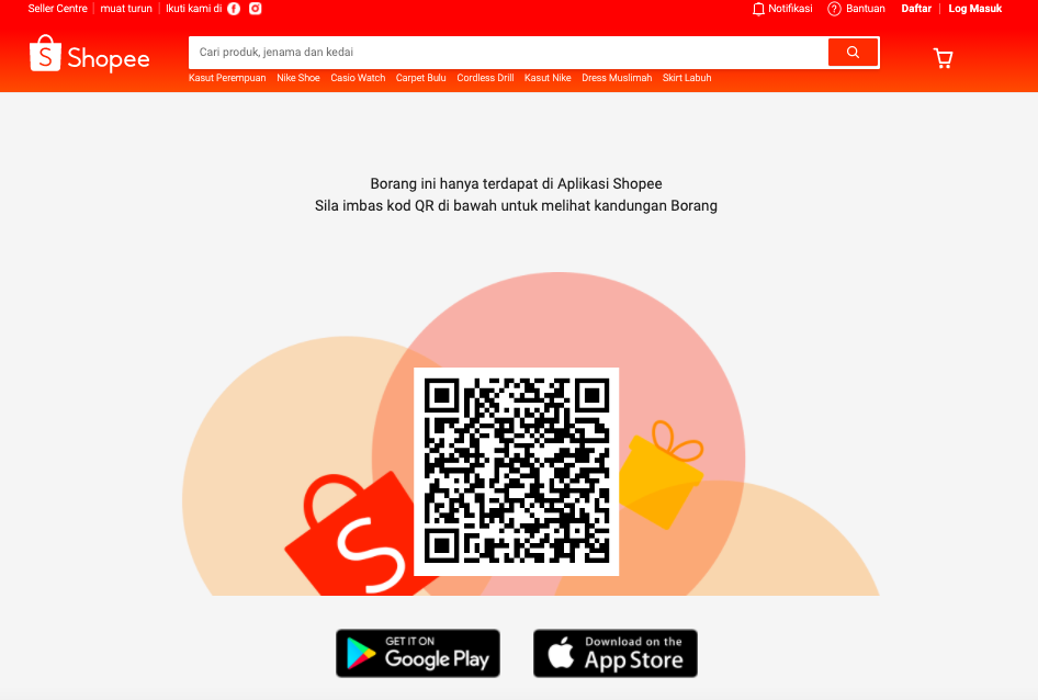 Jika anda ingin aksesnya melalui laman web di Shopee sekalipun, ia akan tetap menyuruh anda untuk scan QR kod seperti berikut: