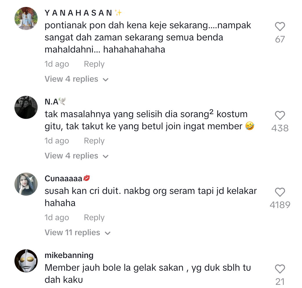 "Susah kan cari duit. Nak bagi orang seram tapi jadi kelakar hahaha" – Netizen