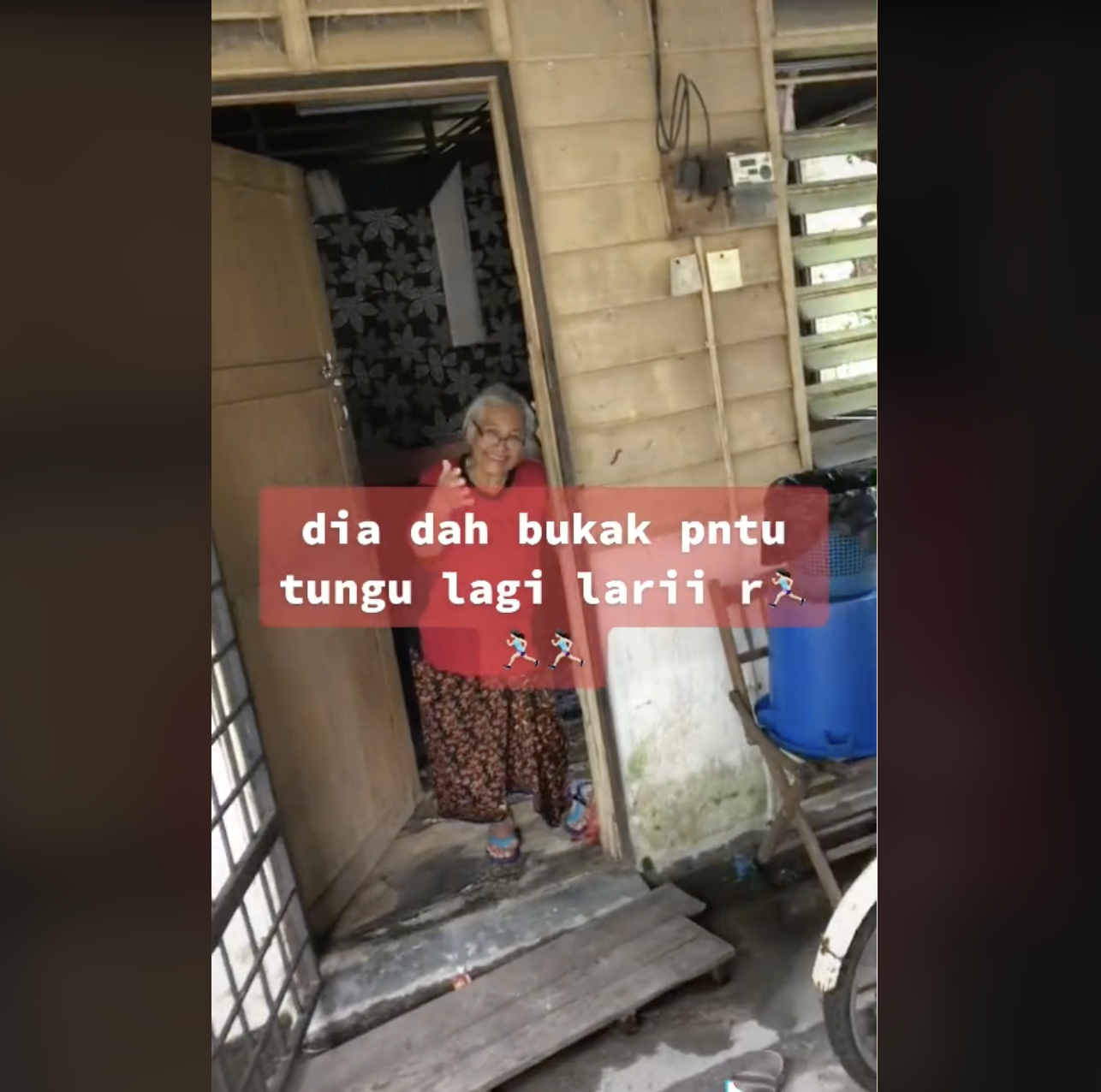 Menerusi video yang dikongsi oleh @nfy_hck, kelihatan seorang gadis baru sampai di hadapan rumah neneknya.