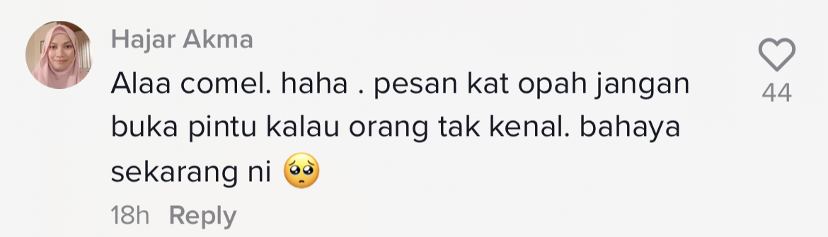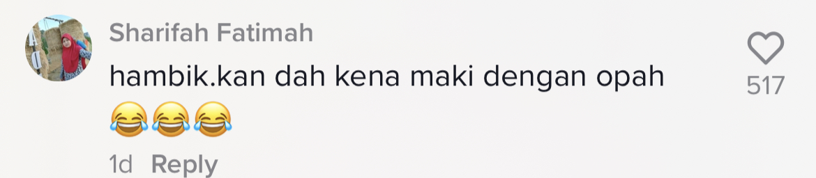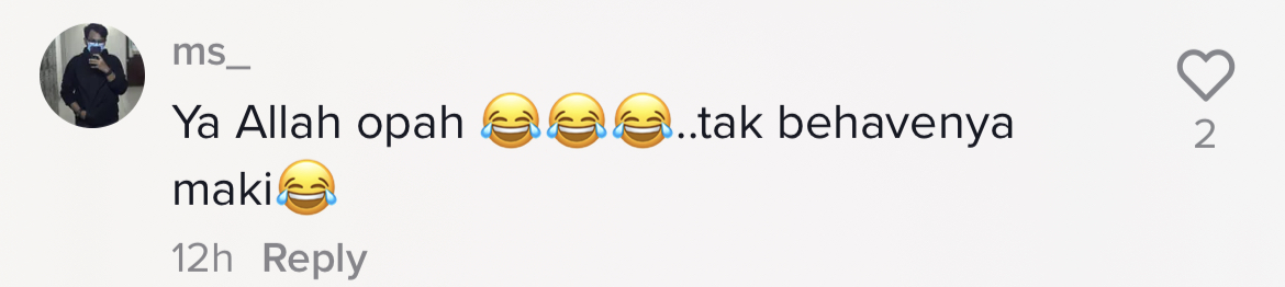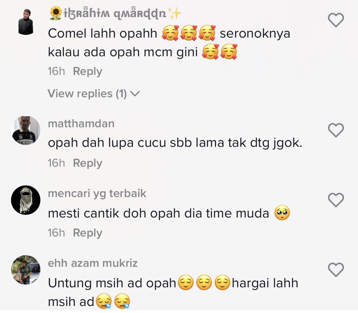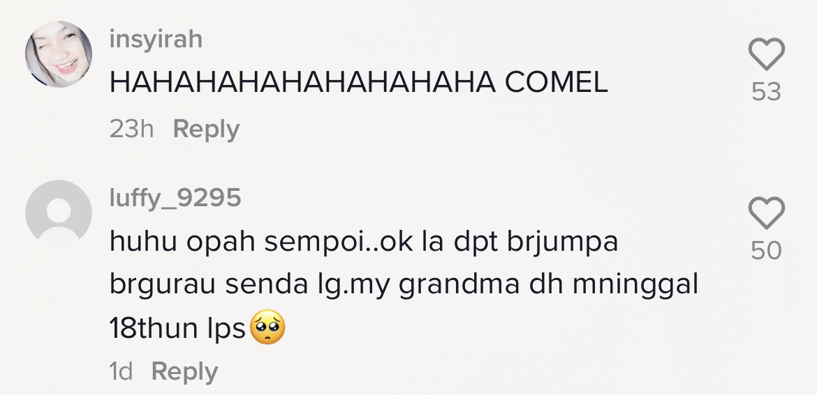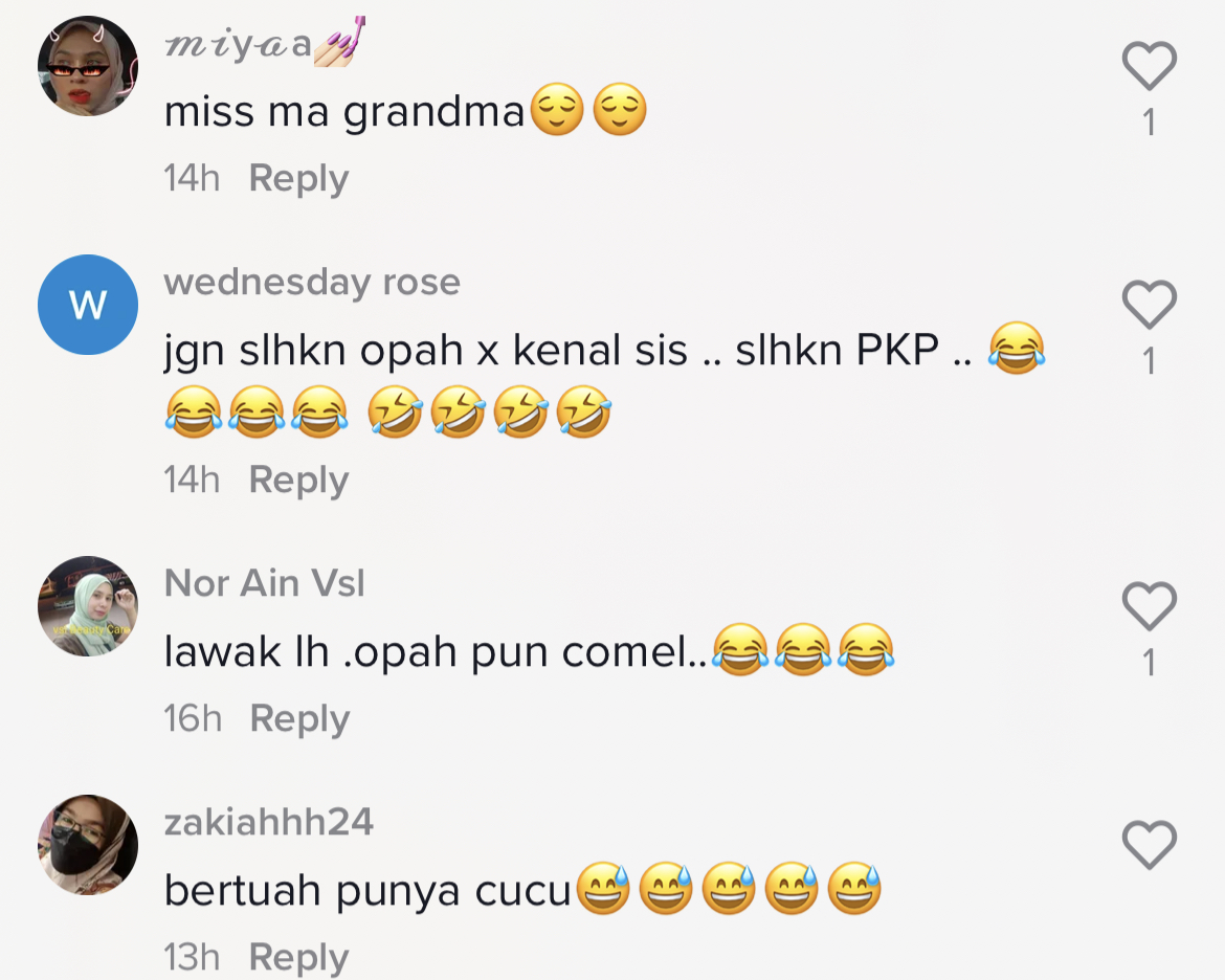 Tinjauan di ruangan komen pula mendapati rata-rata netizen turut terhibur dan memberi reaksi masing-masing berkenaan gelagat nenek dan cucu tersebut.