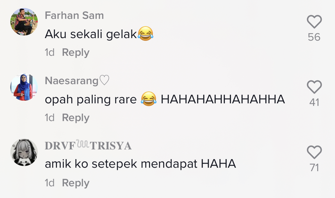 Berikut di bawah adalah antara komen menarik daripada netizen di TikTok:
