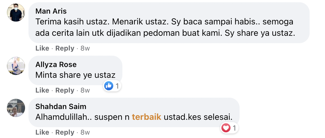 Berikut di bawah adalah antara komen daripada netizen di Facebook: