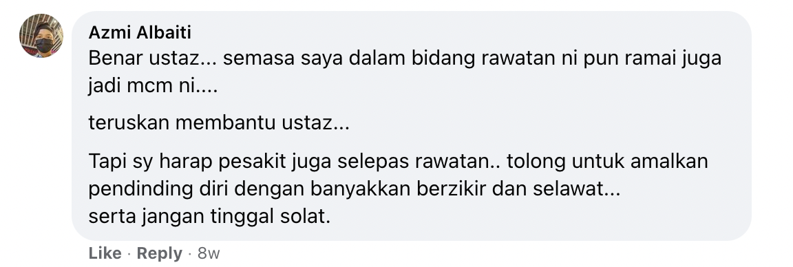 Menerusi posting tersebut, seorang perawat islam yang juga ustaz berkongsi pengalaman semasa dia merawat salah seorang pesakitnya yang dikatakan telah menerima gangguan dari sebuah patung beruang.