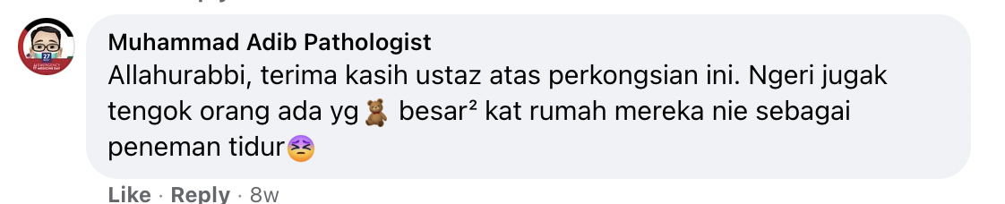 Dia juga sempat memberikan nasihat agar tidak menyimpan patung sebagai perhiasan di dalam rumah serta berharap agar perkongsiannya dapat dijadikan iktibar buat semua orang.