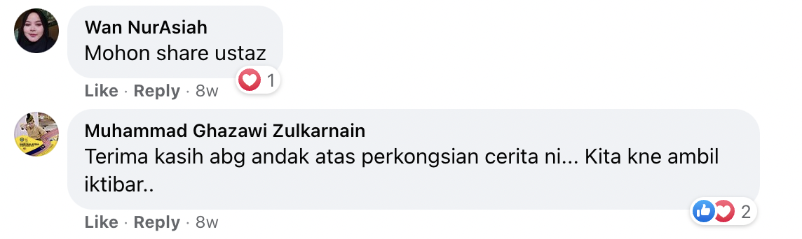 Sementara itu, tinjauan di ruangan komen mendapati rata-rata netizen turut memberika reaksi mereka masing-masing selepas memnca perkongsian itu.