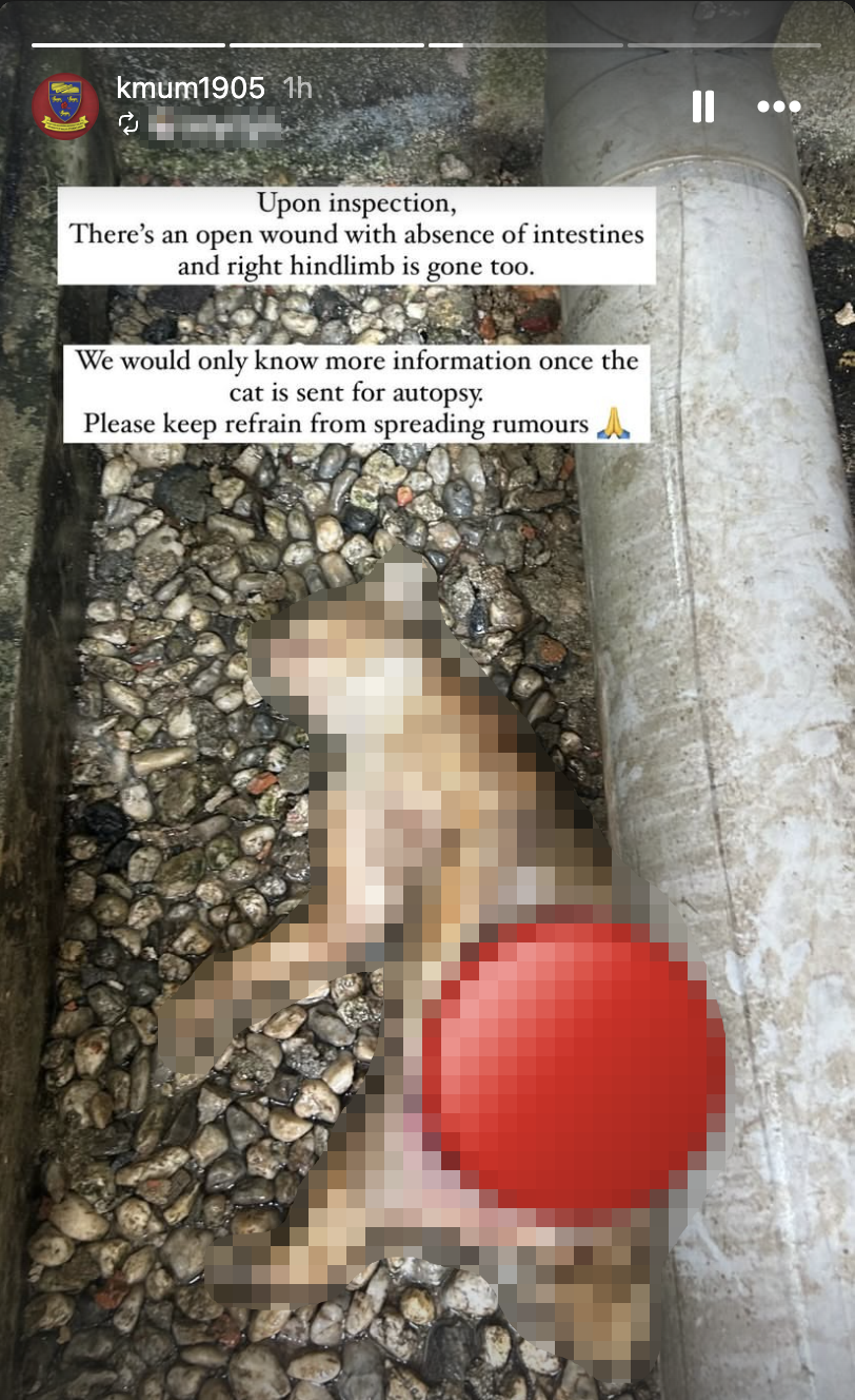 "Kami hanya akan mengetahui maklumat lanjut selepas kucing itu dihantar untuk bedah siasat. Tolong elakkan daripada menyebarkan khabar angin," jelasnya.
