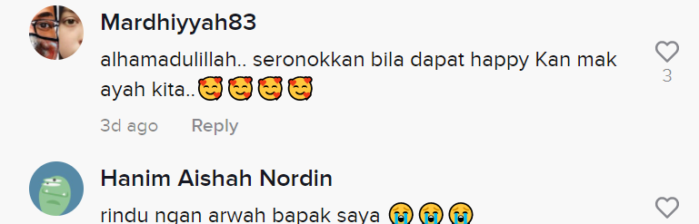 Dalam pada itu, tinjauan di ruangan komen mendapati rata-rata netizen turut merasa sebak melihat reaksi warga emas itu. Malah, ramai yang meluahkan kerinduan kepada ibu bapa mereka.