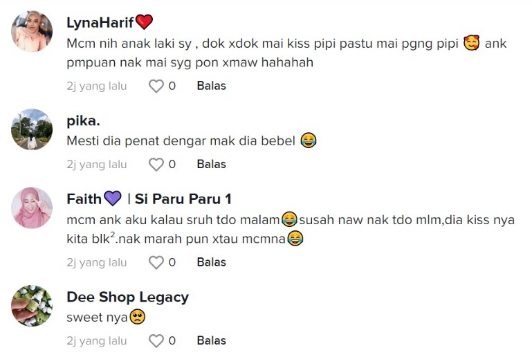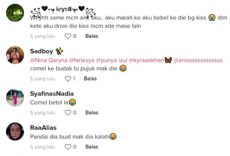 "Kena ciuman anak kecil, sejuk hati kita nak marah haha" – Netizen