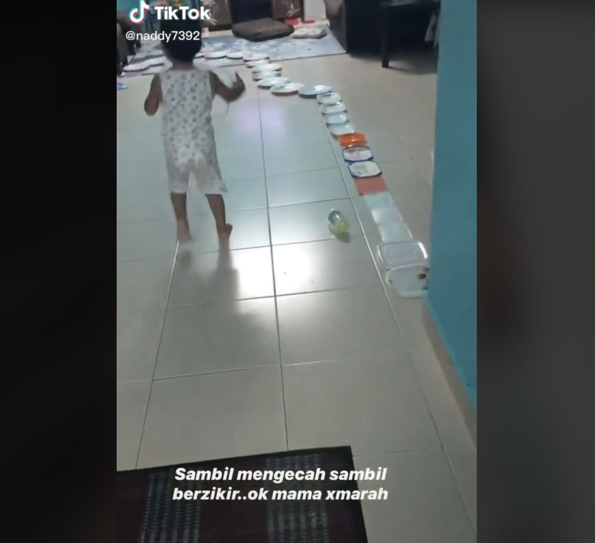 Lain pula dengan video di TikTok ini berkenaan seorang wanita yang tidak jadi marah apabila anaknya membuat sepah sambil berzikir ini telah mendapat perhatian ramai.