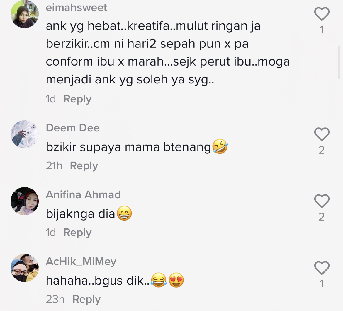 Dalam pada itu, tinjauan di ruangan komen mendapati rata-rata netizen turut berasa senang hati melihat budak lelaki itu berzikir walaupun sambil membuat sepah. Malah, ada juga yang mendoakan agar dia menjadi anak yang soleh.