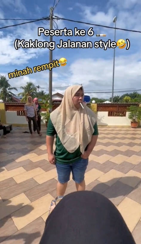 Dapat dilihat terdapat sepuluh gaya yang dipakai dan pelbagai gelagat sekumpulan lelaki tersebut dalam pertandingan itu. Paling menarik perhatian adalah lelaki yang menggayakan tudung sambil menghisap puntung rokok. Keadaan tersebut telah menimbulkan tawa dalam kalangan mereka.