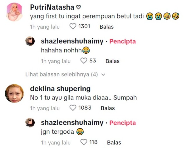 Berikut di bawah merupakan antara komen menarik daripada netizen di TikTok:
