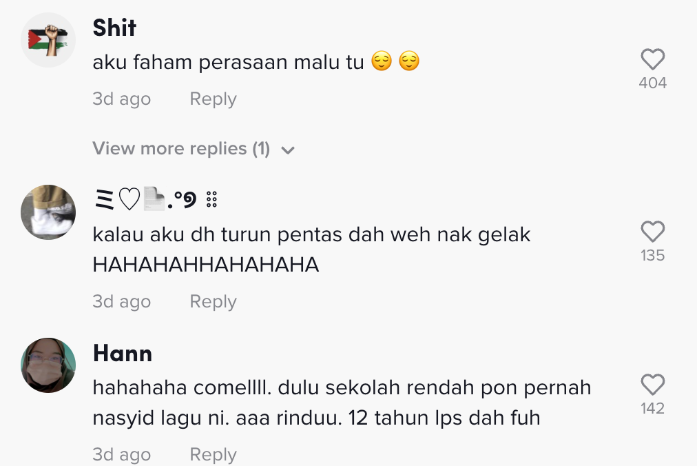 Dalam pada itu, tinjauan di ruangan komen mendapati rata-rata netizen turut memahami apa perasaan pelajar tersebut yang merasa malu kerana tersilap. Malah, ada yang terhibur melihat video itu.