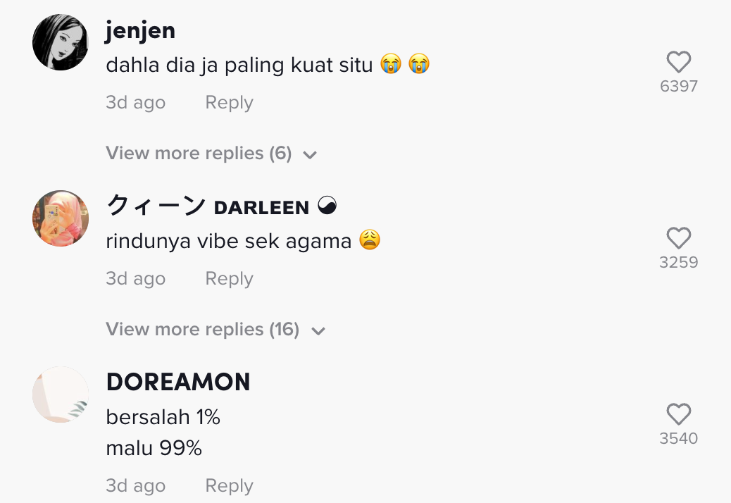 Berikut di bawah adalah antara komen daripada netizen di TikTok: