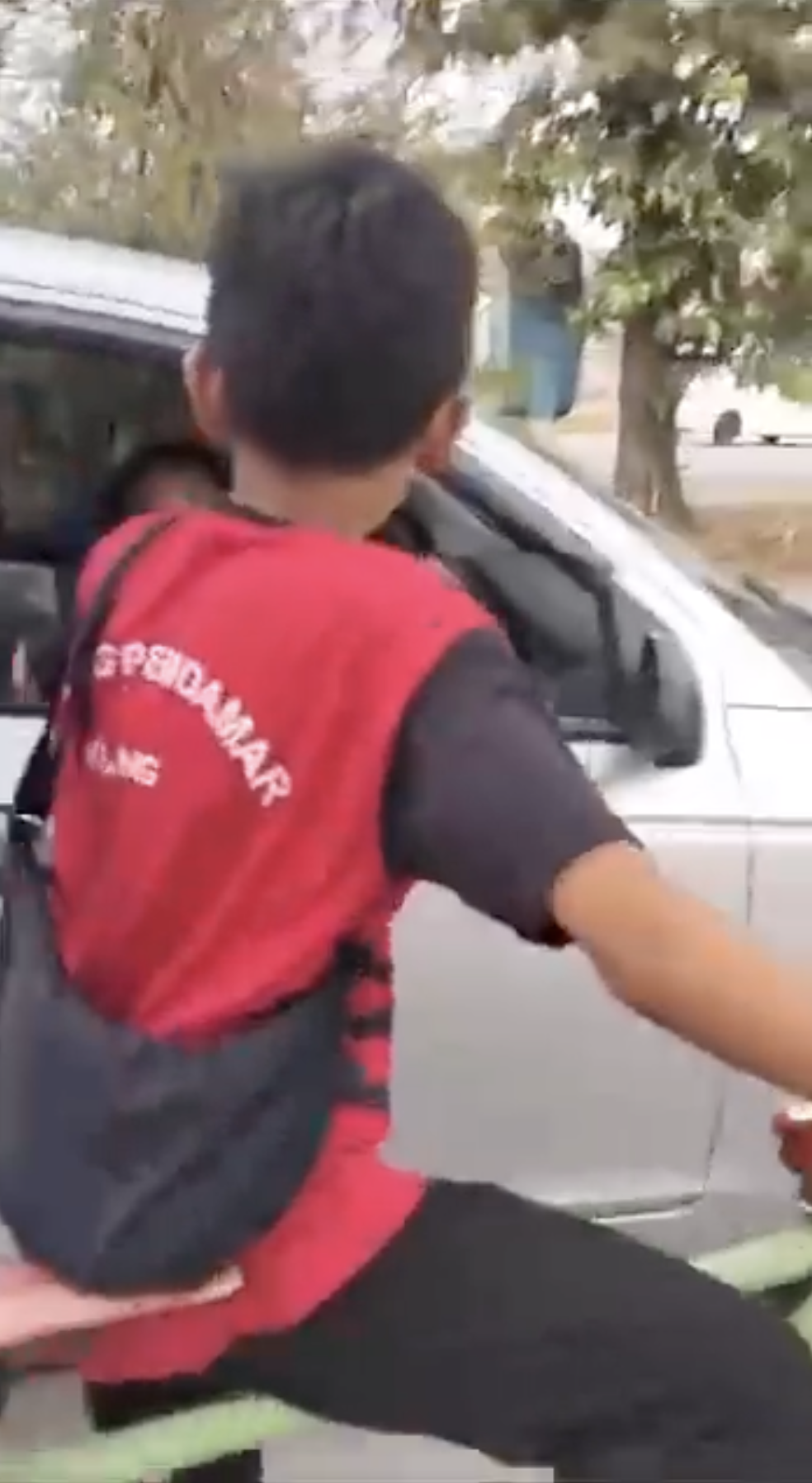 Budak lelaki tersebut dilihat memandu seorang diri ketika mahu menuju ke sesuatu tempat sebelum ditegur oleh rakan-rakannya yang lain di situ.