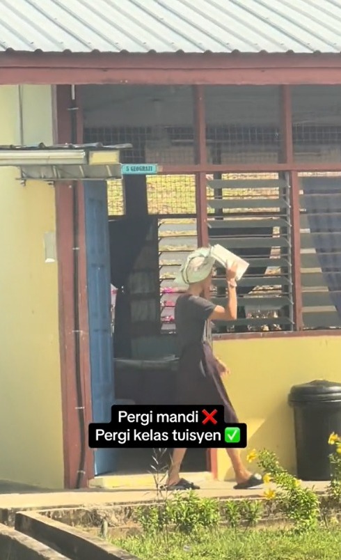 Selamba pakai kain tuala seperti baru habis mandi ke kelas tuisyen