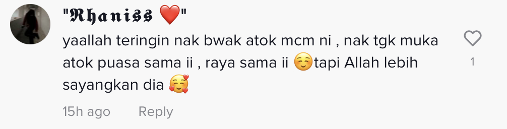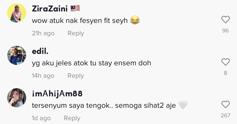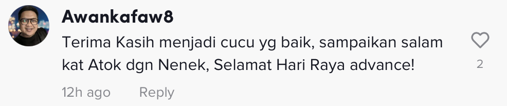 Dalam pada itu, tinjauan di ruangan komen mendapati rata-rata netizen senang hati melihat gelagat kedua atuk dan nenek itu. Selain itu, ada yang turut berkongsi perasaan rindu dengan atuk dan nenek mereka yang sudah tiada.