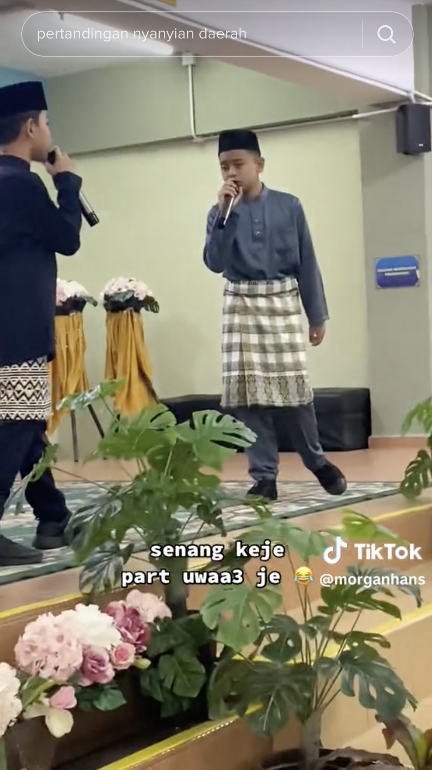 Namun, salah seorangnya dilihat hanya menyanyi "uwaa, uwaa" menyebabkan si perakam terhibur melihatnya.