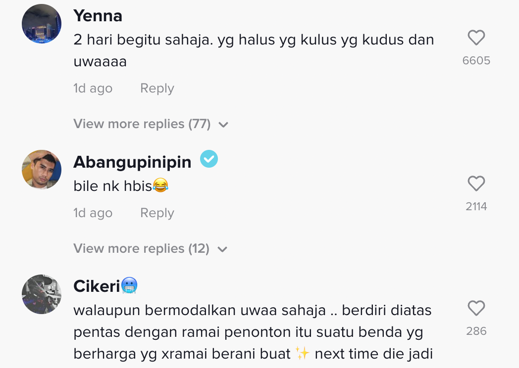 Berikut di bawah adalah antara komen daripada netizen di TikTok: