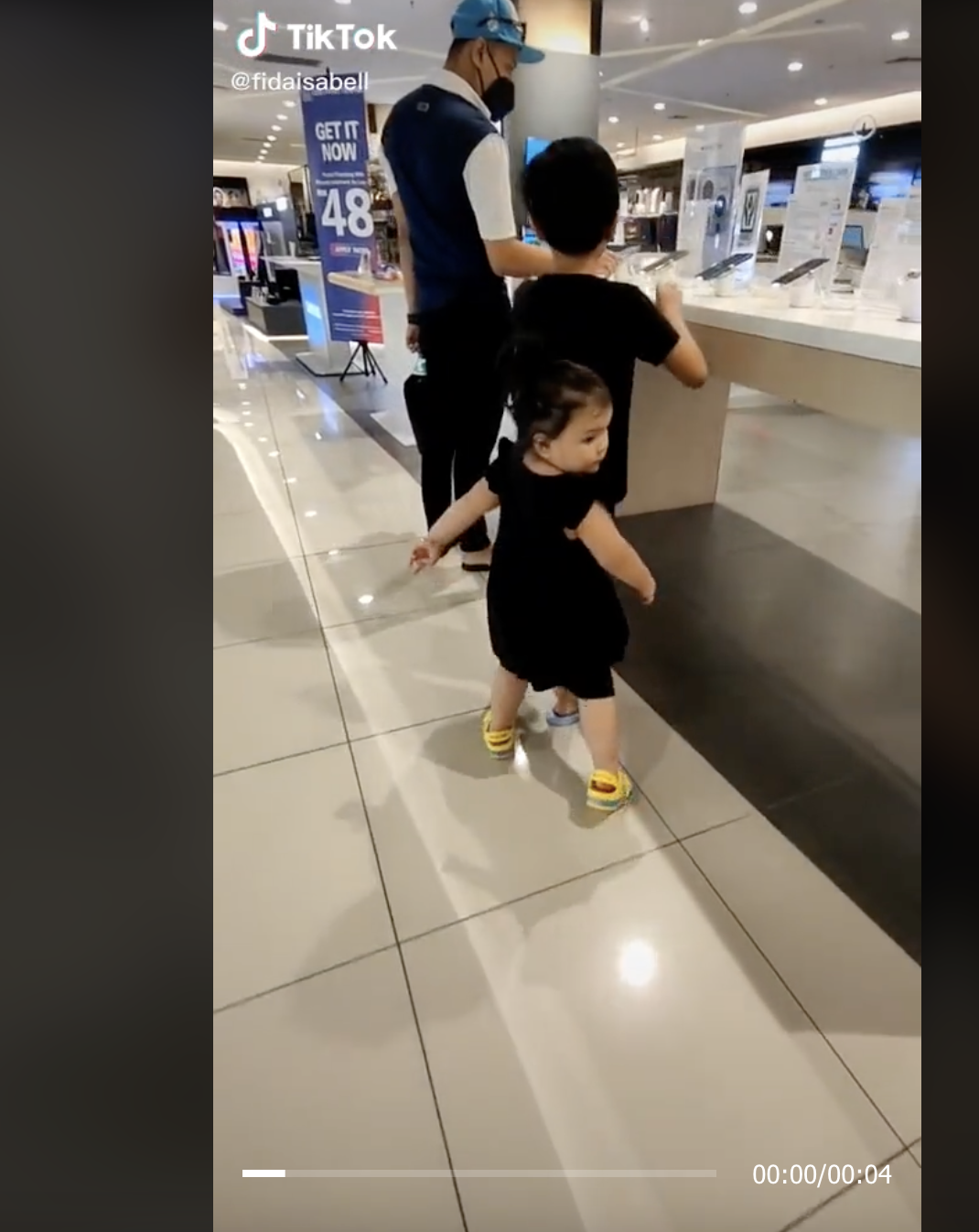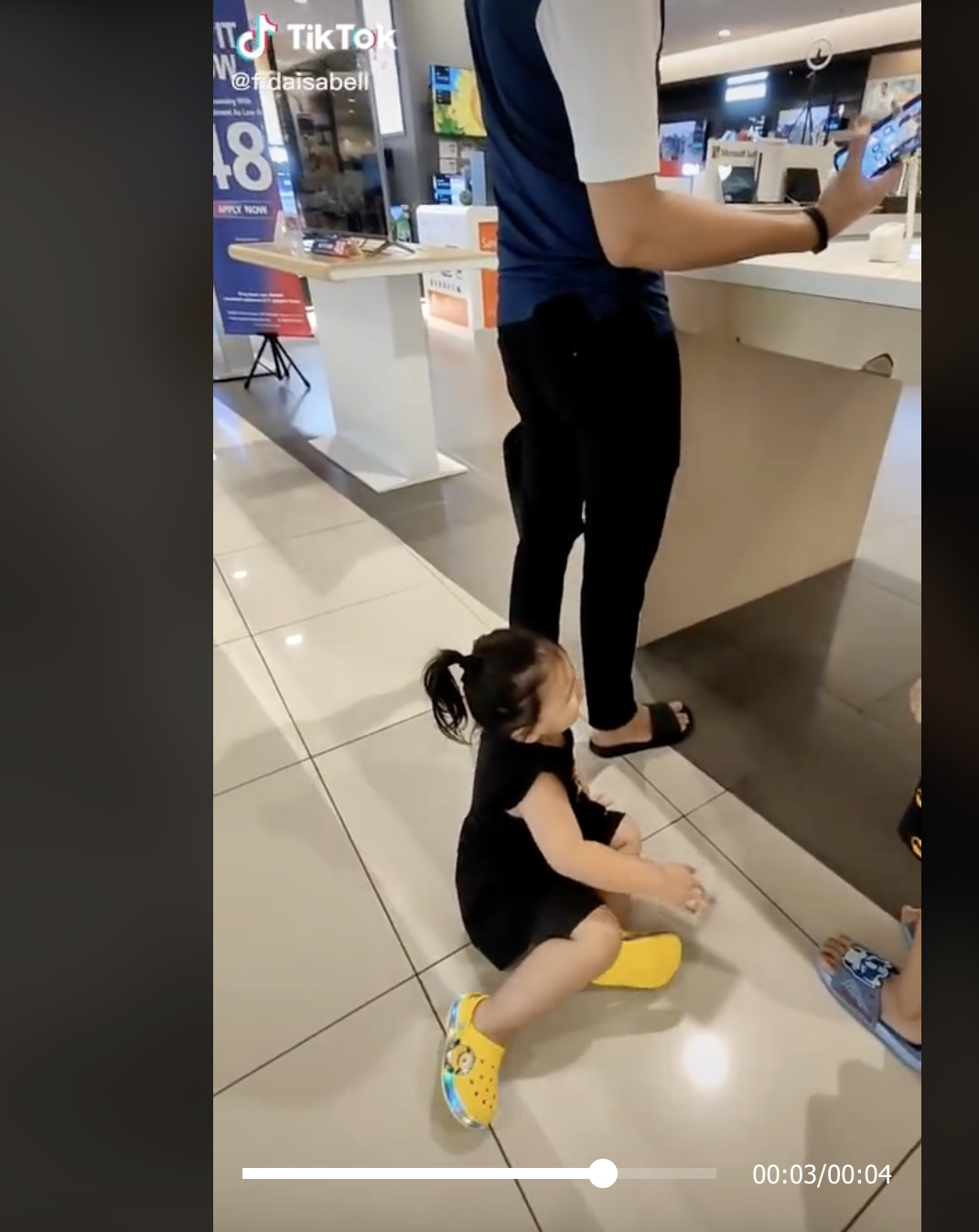 Menerusi video yang dikongsi oleh @fidaisabell, kelihatan seorang budak perempuan sedang berjalan tetapi tidak memandang hadapan.