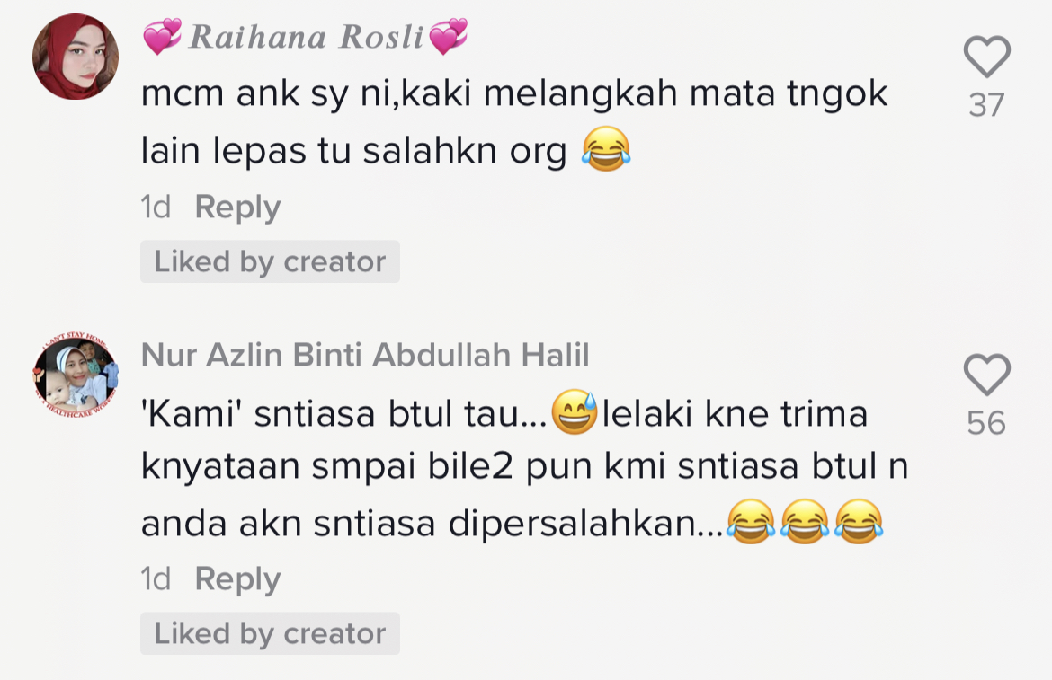 "Kami sentiasa betul tau, lelaki kena terima kenyataan sampai bila-bila pun kami sentiasa betul dan anda akan dipersalahkan" – Netizen
