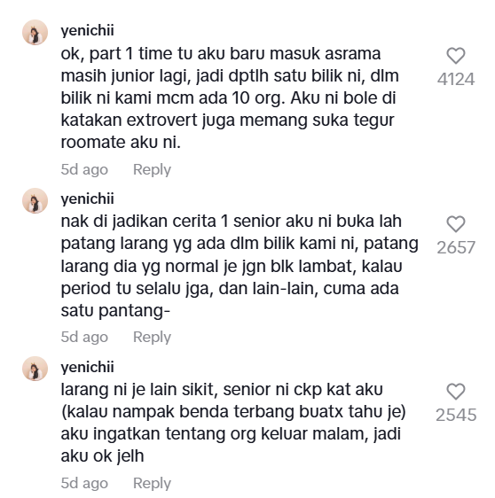Itulah yang dikongsikan seorang wanita menerusi perkongsiannya di TikTok mendedahkan rakan sebiliknya adalah seorang penanggal.