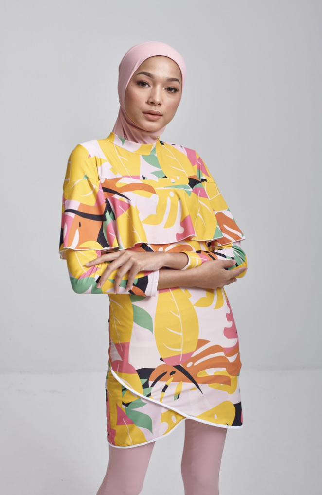 Jadi, dapatlah wanita berhijab merasa juga memakai pakaian renang berjenama ini. Ia juga hadir dengan tudung sekali tau!