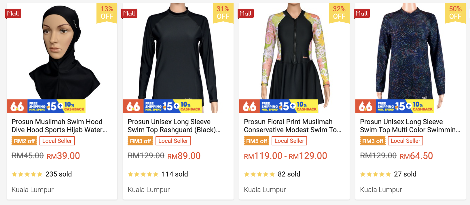 Prosun menawarkan set pakaian renang dengan paras buku lali yang sesuai untuk kaum hawa yang ingin kekal nampak sopan.