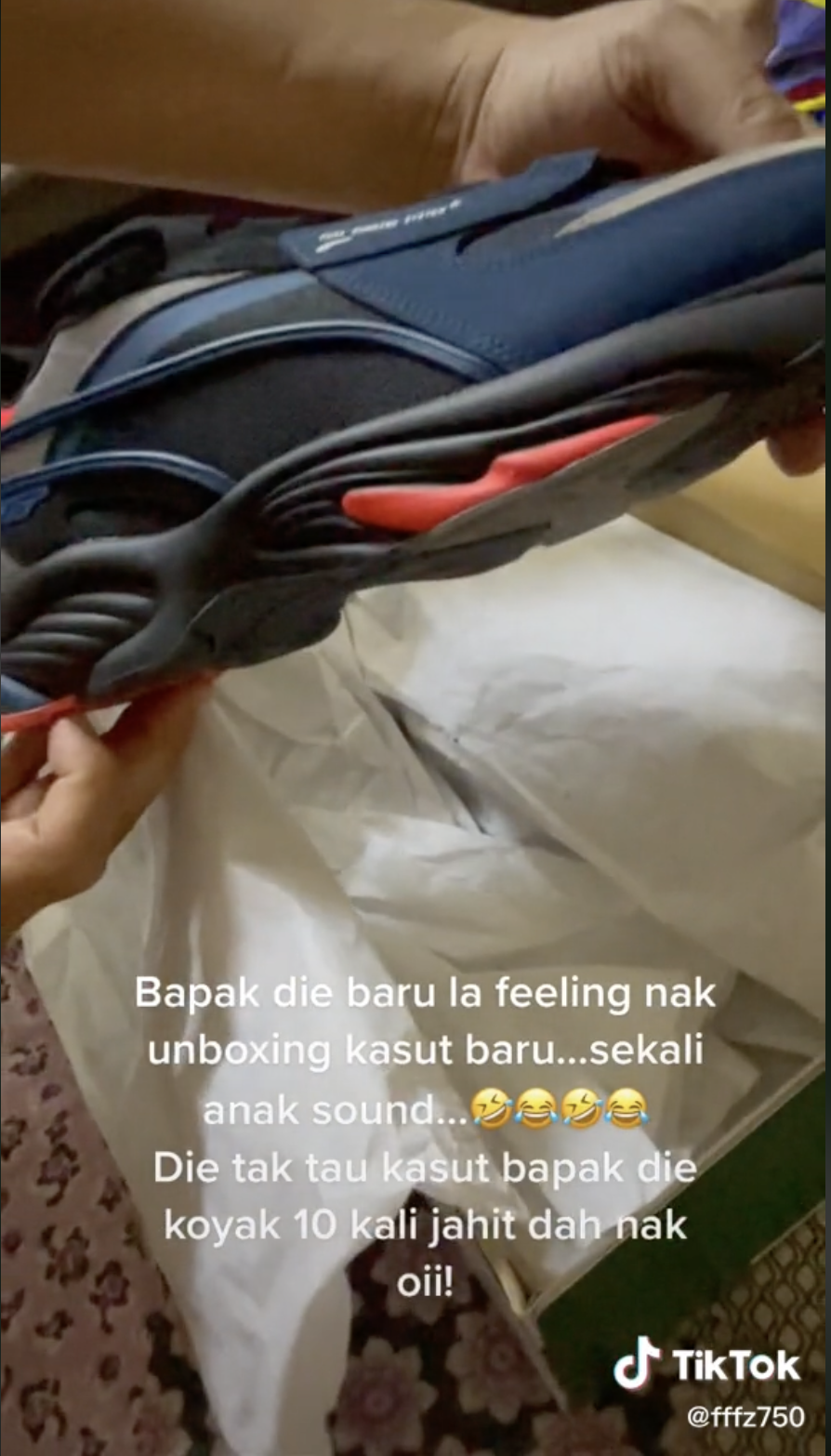 Sama seperti video ini apabila seorang ayah yang sedang membuka kotak kasut barunya tiba-tiba diperli si anak telah mencuri perhatian ramai.