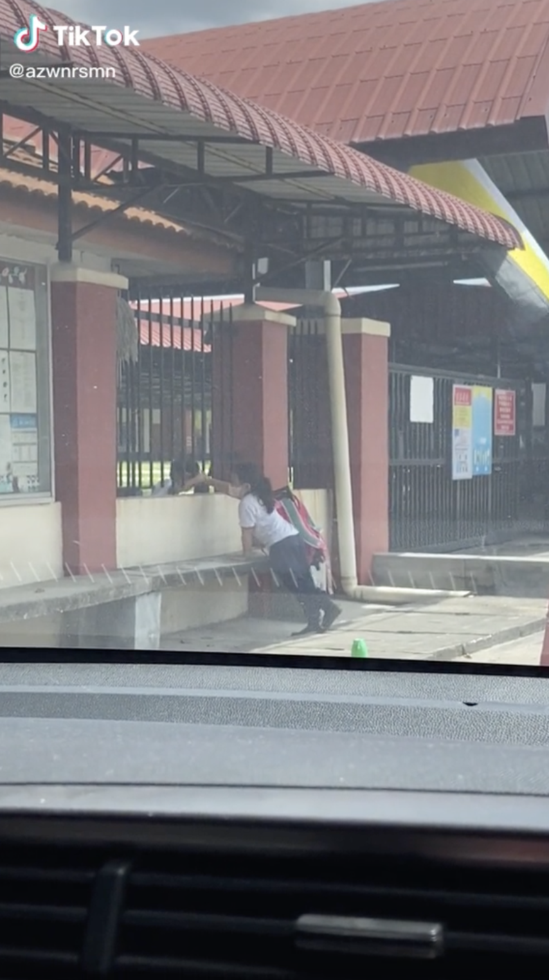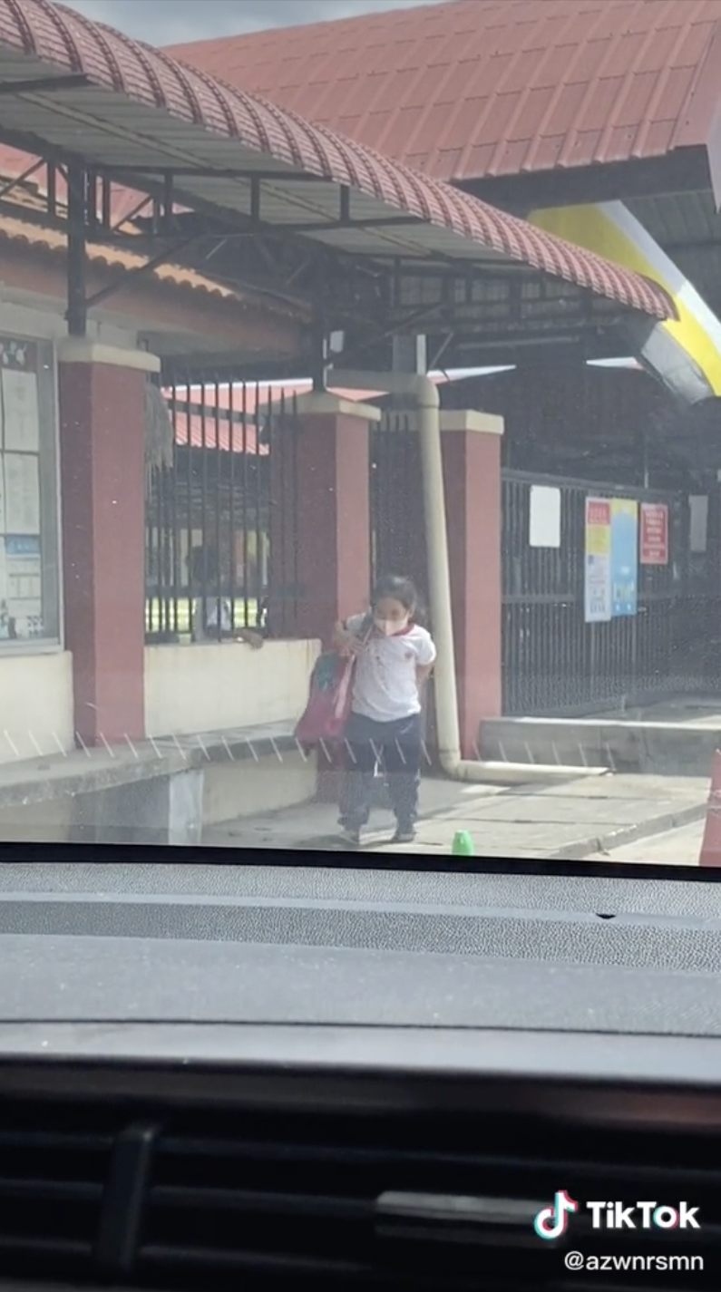 Menerusi video yang dimuat naik oleh @azwnrsmn di TikTok, kelihatan rakaman menunjukkan seorang budak perempuan sedang berada di tempat menunggu bas di sebuah kawasan sekolah.