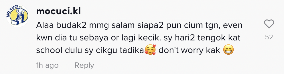 Pemilik video iaitu ibu kepada budak perempuan tersebut sempat berkongsi di ruangan kapsyen, "Kemain anak aku. Salam boyfriend dulu baru masuk kereta. Mak kau tunggu 10 minit ek untuk drama ni".