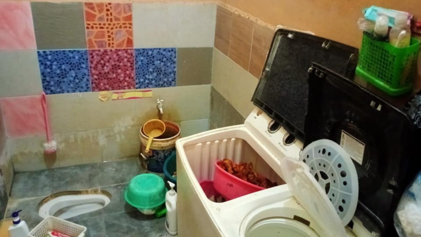 Nasi disorok dalam masin basuh dan ayam dalam tandas