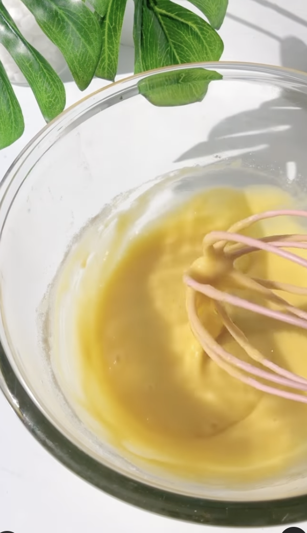 5. Selepas itu, masukkan majerin yang telah dicairkan dan kacau lagi.