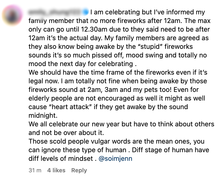 SoImJenn Dikecam Lepas Komplen Orang Main Mercun 3 Pagi CNY – “Perlu Ada Cut Off Time”